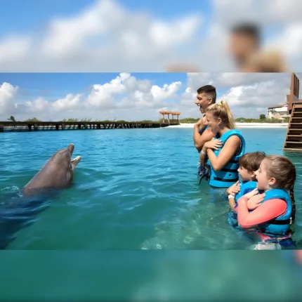 INTERAX Nado con Delfines + Parque Xel-Há (básico): un día acuático todo incluido con interacción con delfines ideal para familias.Importante: Por seguridad, los niños menores de 5 años no pueden participar en las actividades de nado con delfines. Te recomendamos consultar con un asesor personalizado de Cancun100 para revisar opciones adecuadas para tu familia o disponibilidad.Disfruta ríos, caleta natural, snorkel más una experiencia básica e ideal para principiantes con delfines en la Riviera Maya.