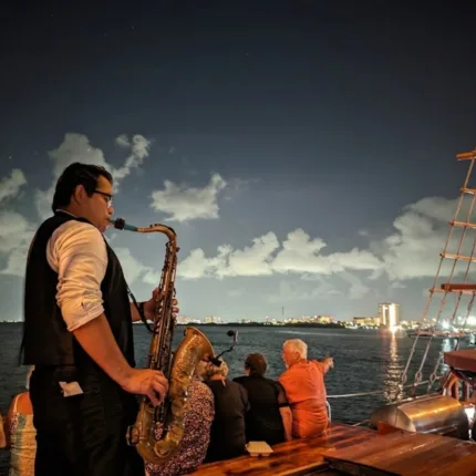 Columbus cena romántica en Cancún para parejas – tarifa extranjero.Aproximadamente 2.5 horas a bordo de un galeón español en la Laguna Nichupté con salida desdeMarina en la Zona Hotelera de Cancún.Ideal para parejas, aniversarios, luna de miel y ocasiones especiales. Importante: precio especial por pareja extranjero (2 adultos), solo adultos.