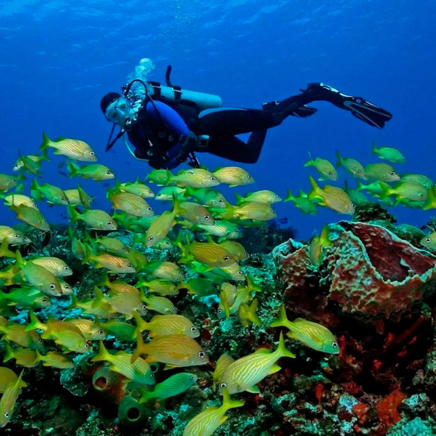 Explora los arrecifes de Cozumel en un tour de buceo todo incluido desde Cancún. Ideal para principiantes o buzos certificados. ¡Aventura, sabor local y paisajes inolvidables!