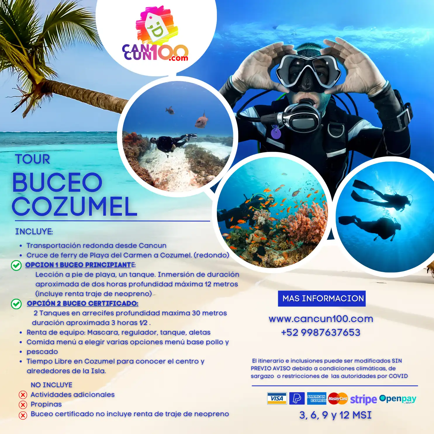 Perfecto para familias, parejas o viajeros aventureros. ¡Reserva hoy tu lugar y descubre por qué Cozumel es uno de los mejores destinos de buceo del mundo!