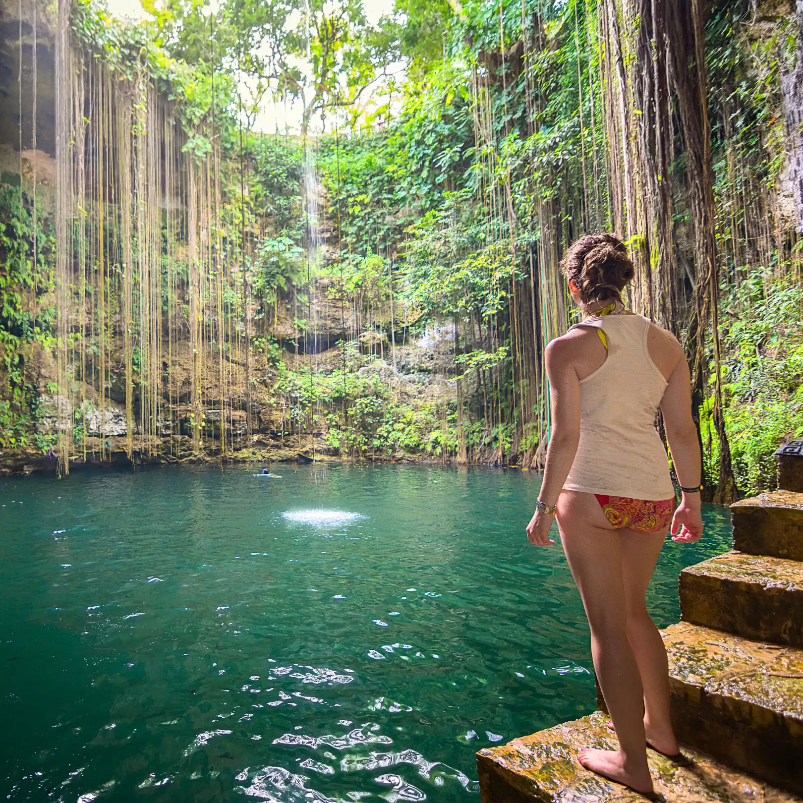 - Entrada a un cenote con tiempo para nadar