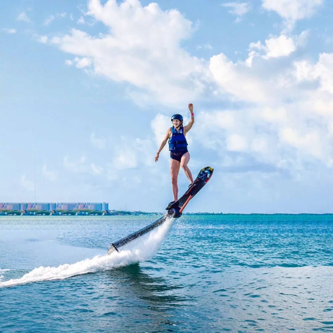 Vive la experiencia de deslizarte y elevarte sobre el agua con el Hoverboard Estándar de 20 minutos, con instructores certificados y equipo completo incluido. Perfecto para sumar adrenalina a tu viaje a Cancún.