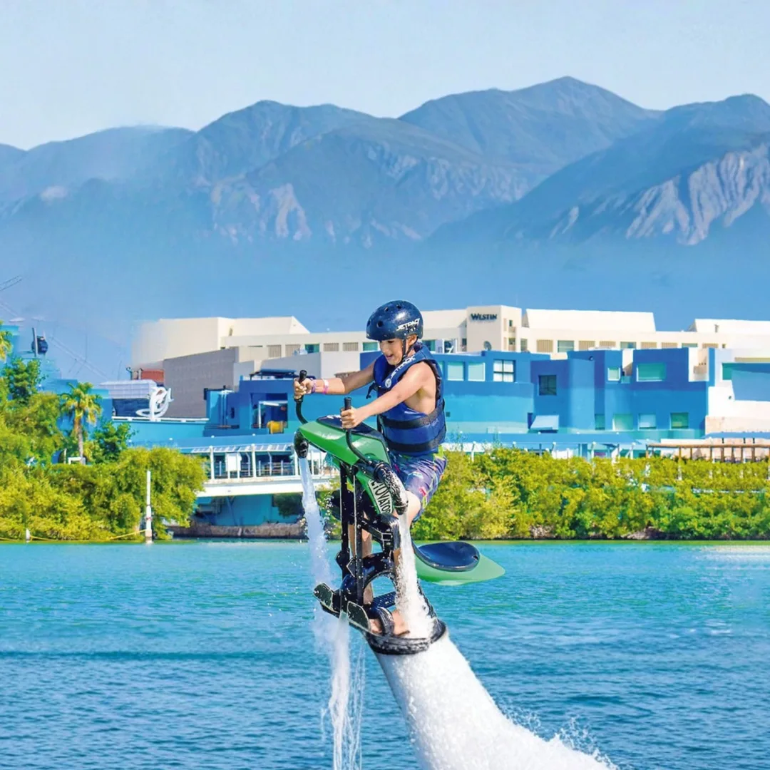 Vuela sobre la laguna impulsado por chorros de agua en un Jetovator de última generación, con la guía de un instructor experto y todo el equipo de seguridad incluido.