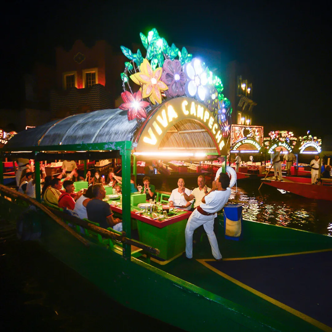 Disfruta del tour Xoximilco Cancún con Transporte para Nacionales. Es una fiesta mexicana nocturna en trajinera con tarifa especial para mexicanos.