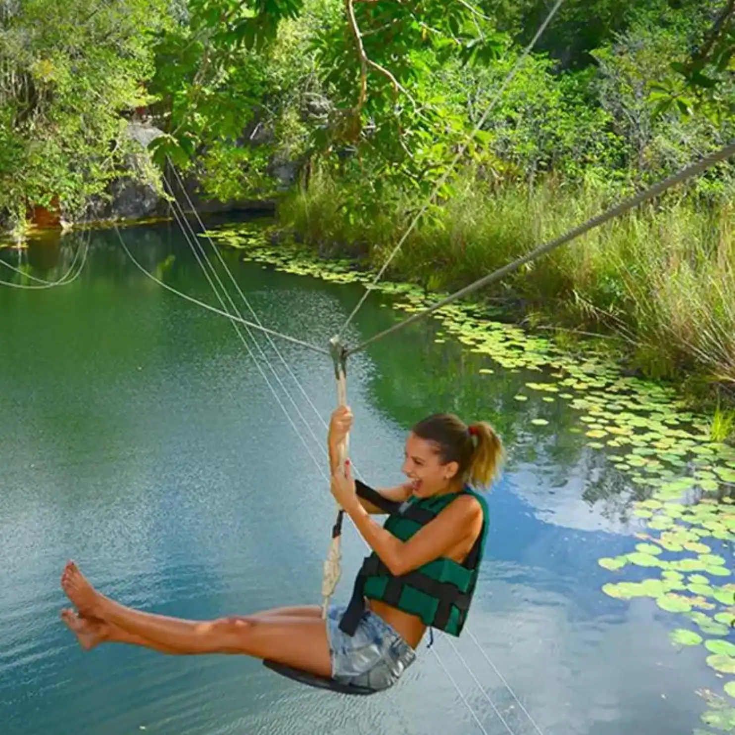Disfruta de una aventura guiada visitando cuatro tipos de cenotes: abierto, semiabierto, caverna y antiguo. Participa en actividades como rappel, kayak, tirolesas y snorkel. El tour incluye transporte, equipo especializado, guía y comida tipo picnic. Una experiencia 100% natural.